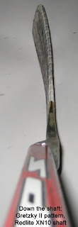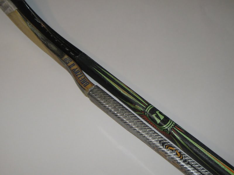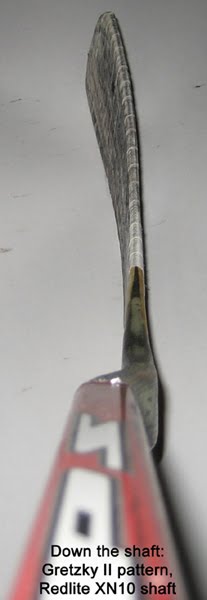 Upon receiving the blade I uttered three words that seem to go along with this design; What the Byfuglien!?! Looking at the blade it looks like any other wood standard-tenon replacement blade until you see the hosel. About one inch below the tenon, the hosel curves dramatically toward the backhand side of the blade. The offset is only about a half-inch but appears more drastic.