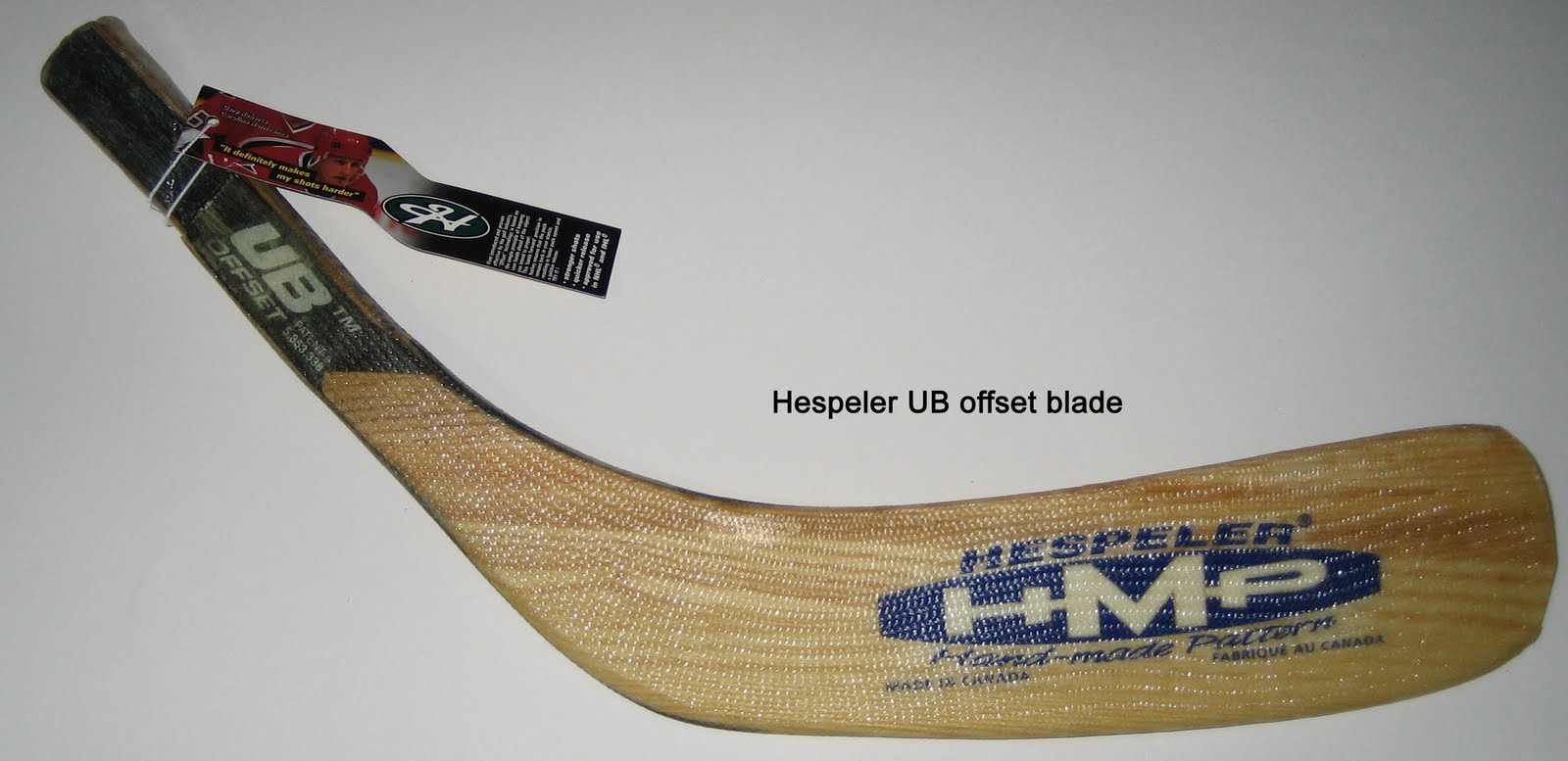 The Hespeler UB offset blade was created by Gene Ubriaco and first appeared under the Hespeler name. Hespeler was a part of Gen-X sports, which was acquired by Huffy. The Hespeler name and remaining stock was sold to Forzani. Currently the tech is available from Combat (formerly Ballistic). The thought behind the offset blade is to line the puck up with the shaft, in theory; this supposedly will improve shot speed and accuracy. Other possible benefits could be better puck handling and an improved backhand shot. The following review will include what I experienced with the actual blade but will focus mostly on how the design element that makes this blade different affects performance.