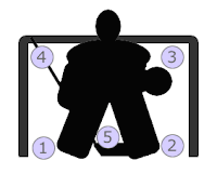 There are five basic scoring zones in hockey. While there is some debate about how they are labeled, one thing is clear: the five hole is right between the goalie’s legs. Traditionally scoring zones are numbered as follows: